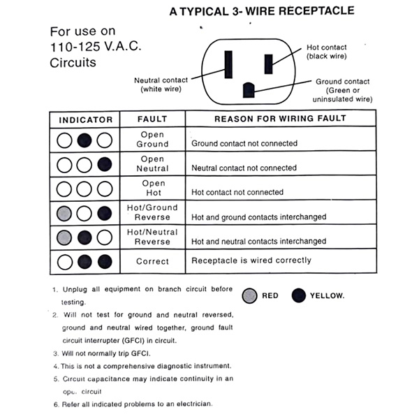 Fits 110-125V AC Outlets: Works with standard 120V 3-prong US outlets. Easy to Use: Plug in and check for wiring issues with indicator lights. Compact & Portable: Lightweight, easy to carry and store.